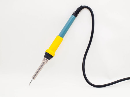 Yellow soldering iron on blurred white background