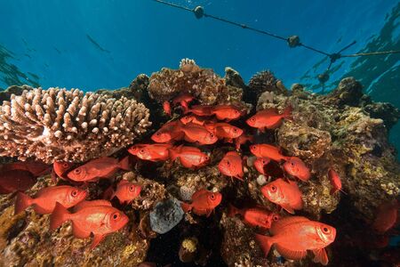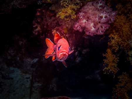 The beauty of the underwater world - The Priacanthidae, the bigeyes, are a family of 18 species of marine ray-finned fishes - scuba diving in the Red Sea, Egypt.