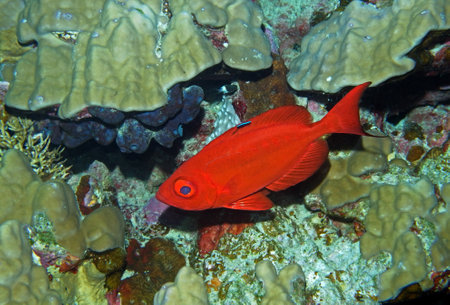 red fish with a bright eye on a coral reef background
