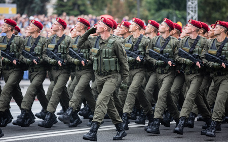 KIEV, UKRAINE - Aug 24, 2015: Columns Ukrainian soldiers on the march of Independence on the occasion of 25th anniversary of Independence of Ukraine