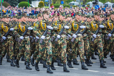 Military men marching at the celebration of the 75th anniversary of the victory in the Great Patriotic War, parade of May 9 in Minsk, Belarus.