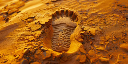 Minimalist Robot's Imprint in the Sand. Concept Minimalist, Robot, Imprint, Sand, Art