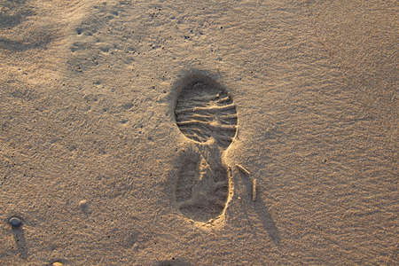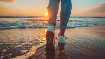 Silhouette of Close-up view of a person's foot walking at sunset. Concept of Inspirational and positive thinking.