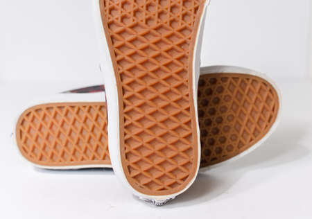london, england, , 18/05/2019 Vans skateboarding half authentic style shoes gum sole waffle sole. Iconic retro vintage classic fashion revival sneakers. signature skate shoes. skateboarding culture.