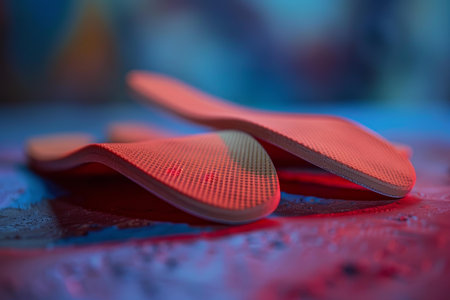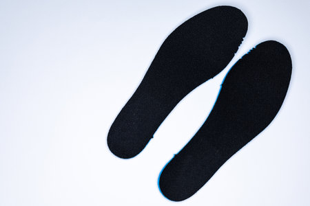 Shoe inserts on a white background. Comfortable orthopedic shoe accessories. Photo taken with flash.