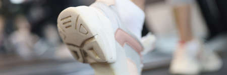 Sneaker shoe of sport girl exercise running on treadmill machine