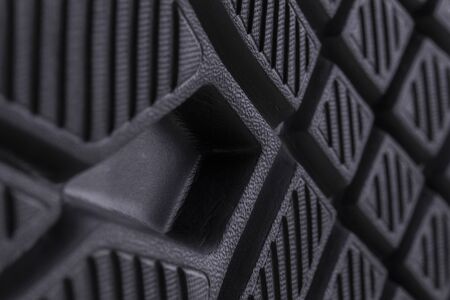 Fragment of a rubber black sole sneaker. Bottom of sports shoes