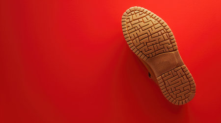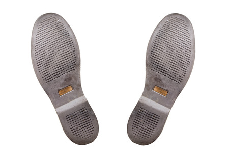 part of the boot with a rubber sole with a brown pattern on a gray background