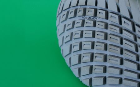 macro pattern of rubber sole of sneakers against green