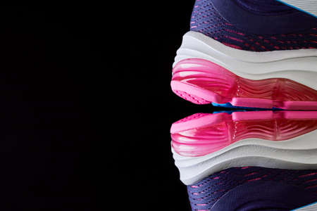 Cushioned running shoes. Female sneakers for run on dark background. Fashion stylish sport shoes.