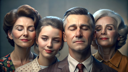 Medium shot family in retro style