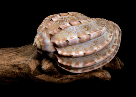 Isolated seashell on a dark backdrop. backdrop with ornamental sea shells