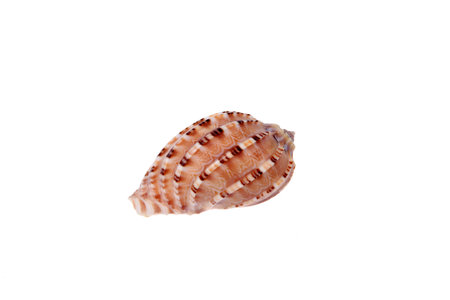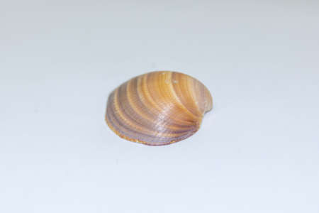 Seashell isolated on a white background. Macro photo of sea shell.