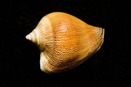 Conch seashell on the black background in studio. Close-up