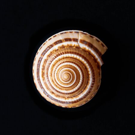 Beautiful sea shell on a black background. Close-up.