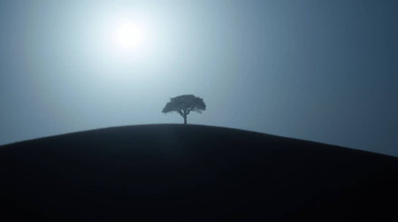 Solitary Tree on a Sunlit Hill – Minimalist Nature Landscape