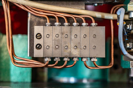 External hydraulic system of machine tools. Copper pipes for pressurized oil supply.