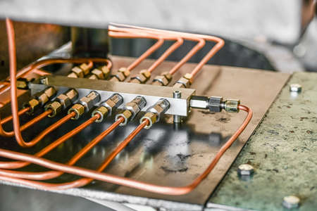 Copper pipes of the pressure distributor of the hydraulic oil station of the metalworking machine.