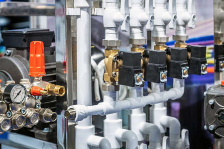 industrial solenoid valve for liquid, oil, air, pneumatic, hydraulic pipe line machine. control valve by PLC and computer. Automatic production line component