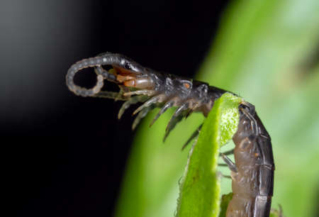 Macro photo of a Silverfish (Lepisma saccharina) on a black studio background