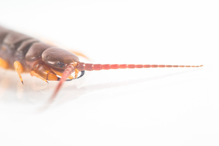 Photo of the Latin name Lepisma saccharina insect taken on white wall.