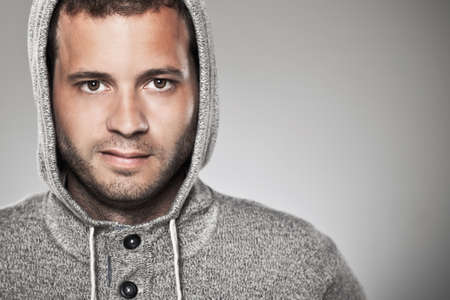 caucasian man with stubble in studio with copy space. photo of caucasian man with stubble