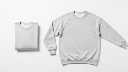 The image shows two light gray sweatshirts. One is folded neatly, while the other is laid out flat, displaying its full design. The sweatshirts appear to be made of a soft, comfortable fabric, suitable for casual wear. The background is plain white, which highlights the color and texture of the sweatshirts.