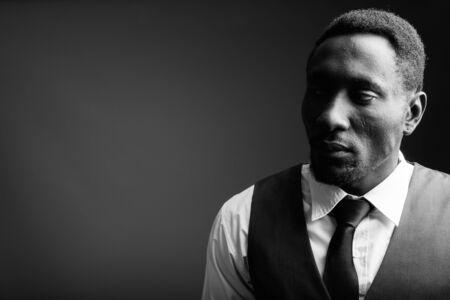 Young handsome African businessman against gray background