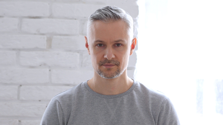 mature handsome man portrait with grizzled beard hair, male beauty