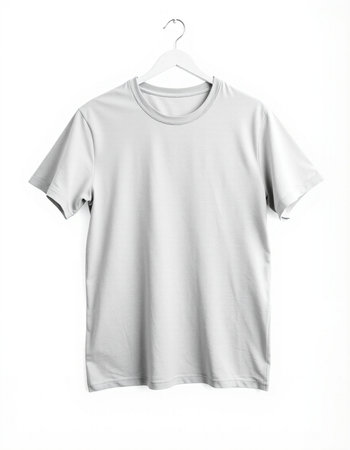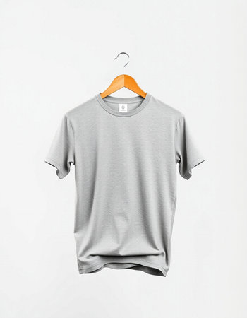 Grey t-shirt on hanger isolated on white background. Mock up