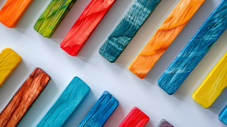 Top view of colored wooden sticks with customizable space for text. Copy space.
