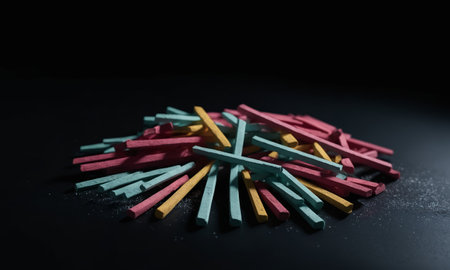 Top view of beautiful fresh and bright colored sticks for creativity practice of children