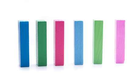 Category concept. Different shape of colorful wooden geometry block rearrange into its category.