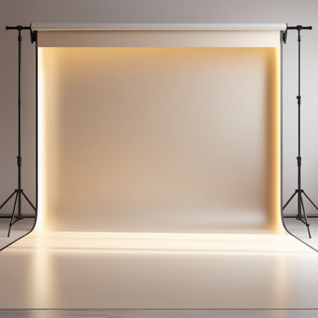 Photo studio with lighting equipment. Mockup for your design. 3D rendering