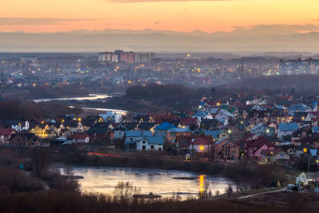 Aerial evening view Ivano Frankivsk city, Ukraine.