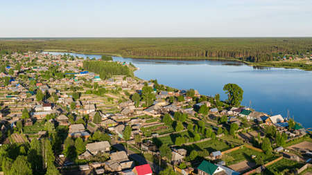 Top view of the village of Shiryaevo, Samara region in summer, Russia