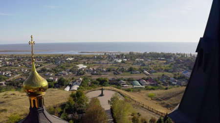 Volzhsky, Russia - jun 01, 2019: Russian temple top view city view