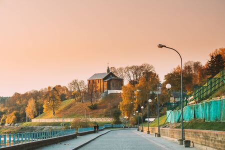 Grodno, Belarus. Road Kalozha Church In Sunny Autumn Evening. Church of Sts. Boris and Gleb