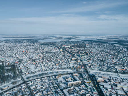 Aerial view from a drone of the city of Nizhyn, Chernihiv region in winter