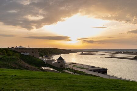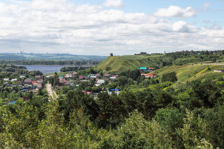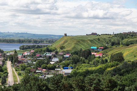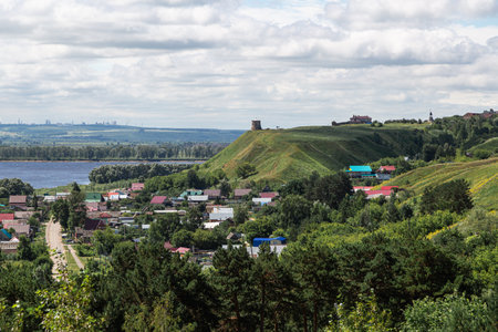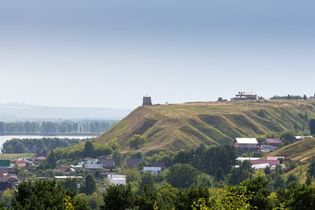 The tower of an ancient Bulgarian fortress on a high cliff on the banks of the Kama River, Elabuga, Tatarstan, Russian Federation