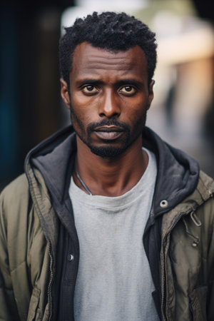 Portrait of a serious man of the African race on the street.