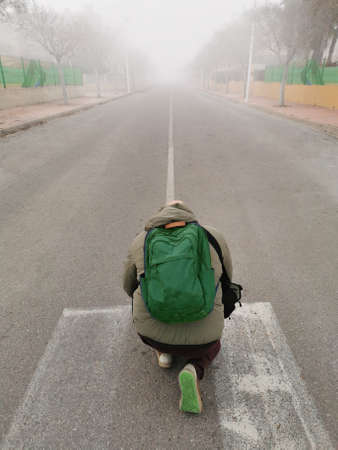 Traveler with backpack on the road