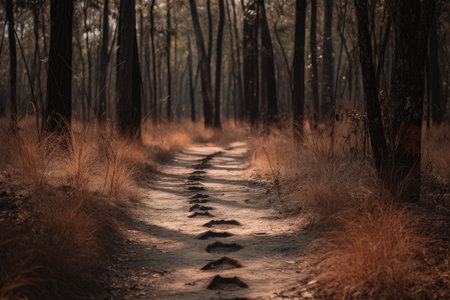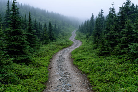 Lonely footpath in misty forest symbolizing quiet absence of human presence