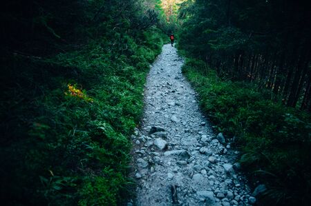 Hiking trail in the mountains at sunset, Tatra Mountains, Poland