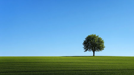 Lone tree on a grassy hill under a clear blue sky, serenity and nature concept