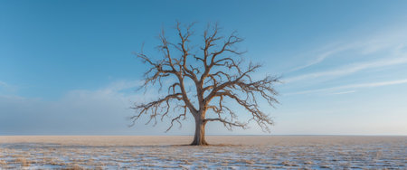 Majestic Winter Landscape A Solitary Tree Stands Resilient Amidst a Snow-Covered Serenity