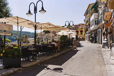 Fornalutx, Spain - November 1 2023: beautiful view with people in the cafe