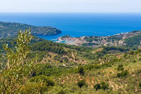 beautiful view down the valley with Port de Soller town, Majorca, Spain
