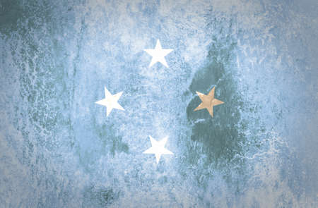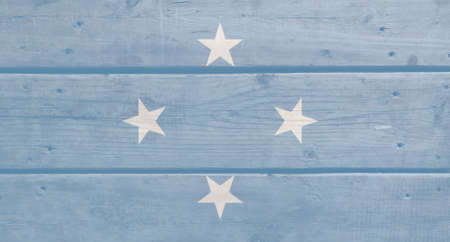Micronesia flag painted on wood plank background. Brushed natural light knotted wooden board texture. Wooden texture background flag of Micronesia