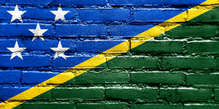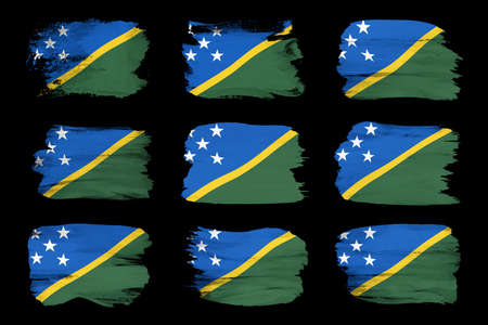 Map of Solomon Islands with national flag. Highly detailed editable map of Oceania country territory borders. Political or geographical design vector illustration on gray background